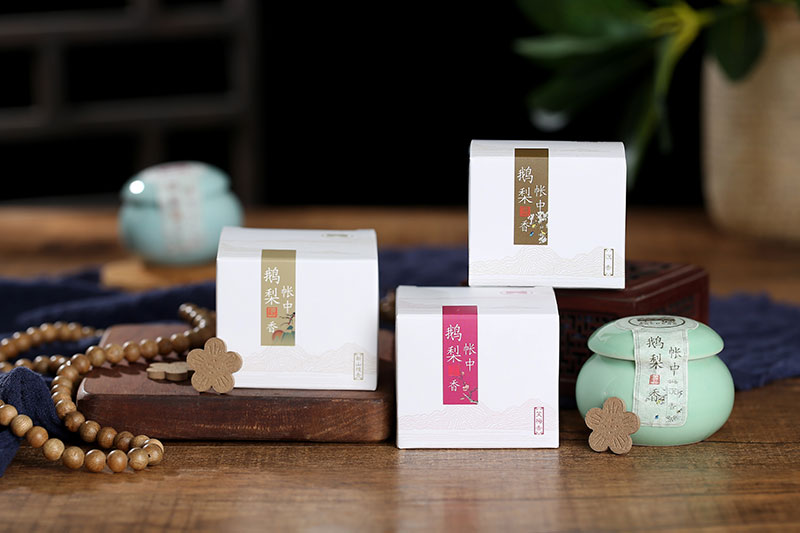 品茶是清事,若無好香在爐,遂乏一份幽趣。品茗焚香已經成為一種時尚。制香師立足中國茶文化中五大經典茶品:白茶、紅茶、綠茶、黑茶、青茶,設計了五款香品:白茅稈、畫紅眉、芳草綠、黑月沉、醉青閨,每個名字都自帶意境。