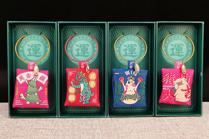 天意香囊采用原創(chuàng)國潮圖案,極富創(chuàng)意和趣味性,利用諧音梗配上搞笑圖片,比如“才華橫億”“福祿雙拳”等等符合年輕人的審美。